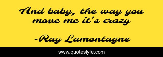 This page presents the quote "And baby, the way you move me it's crazy". Author of this quote is Ray Lamontagne. This quote is about romance, love, affection, song-lyrics,.