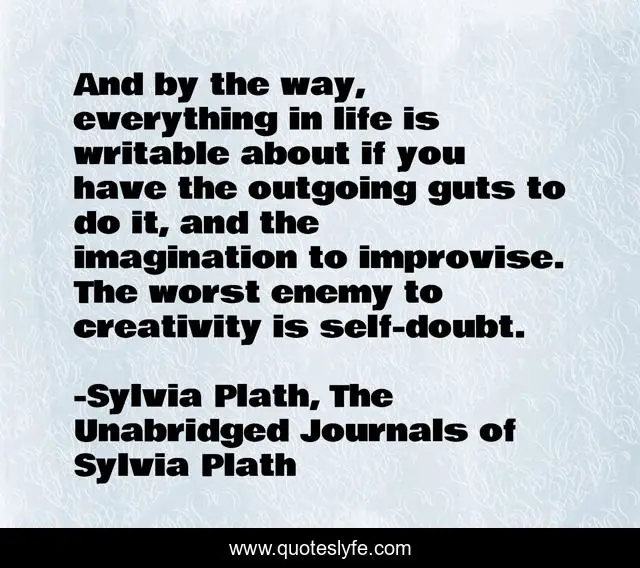 This page presents the quote "And by the way, everything in life is writable about if you have the outgoing guts to do it, and the imagination to improvise. The worst enemy to creativity is self-doubt.". Author of this quote is Sylvia Plath, The Unabridged Journals of Sylvia Plath. .
