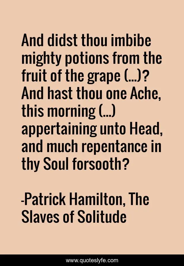 "Patrick Hamilton, The Slaves of Solitude Quotes." Quoteslyfe.com, 2025. Sat. 06 Dec. 2025. <https://www.quoteslyfe.com/quote/And-didst-thou-imbibe-mighty-potions-from-41491>.