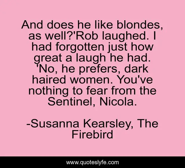 "Susanna Kearsley, The Firebird Quotes." Quoteslyfe.com, 2025. Fri. 05 Dec. 2025. <https://www.quoteslyfe.com/quote/And-does-he-like-blondes-as-well-279812>.
