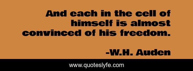 This page presents the quote "And each in the cell of himself is almost convinced of his freedom.". Author of this quote is W.H. Auden. This quote is about freedom, poetry,.