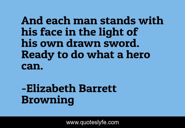 This page presents the quote "And each man stands with his face in the light of his own drawn sword. Ready to do what a hero can.". Author of this quote is Elizabeth Barrett Browning. This quote is about day, one,.