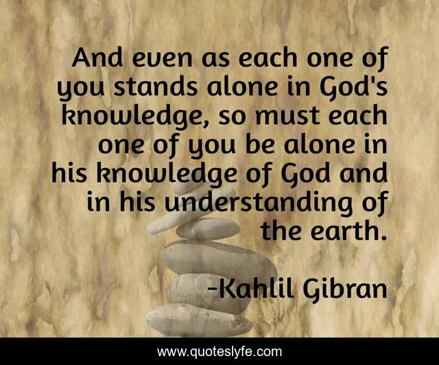 This page presents the quote "And even as each one of you stands alone in God's knowledge, so must each one of you be alone in his knowledge of God and in his understanding of the earth.". Author of this quote is Kahlil Gibran. .