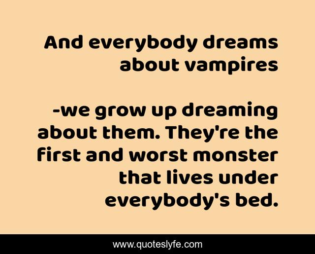 This page presents the quote "And everybody dreams about vampires". Author of this quote is we grow up dreaming about them. They're the first and worst monster that lives under everybody's bed.. This quote is about sunshine, robin mckinley,.