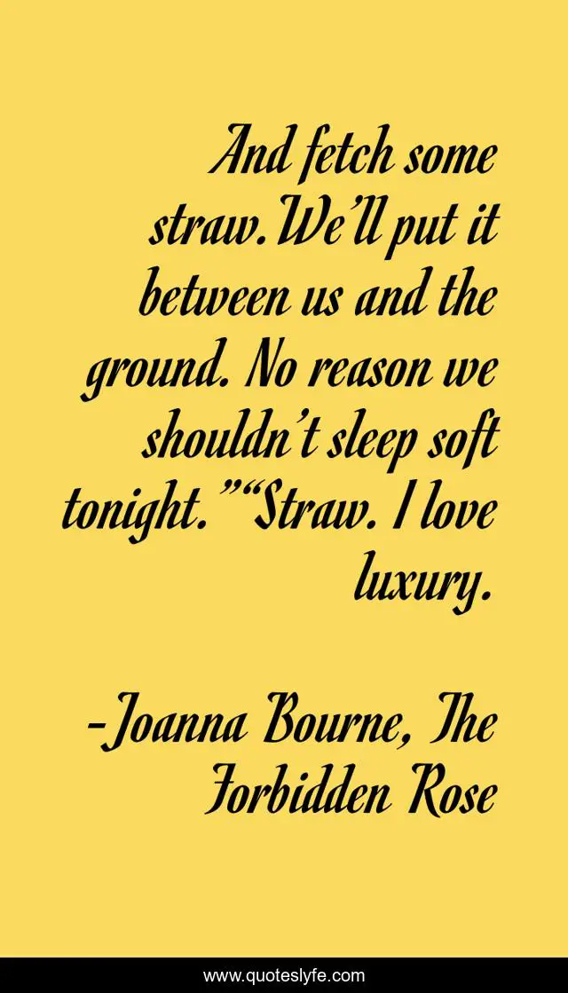 "Joanna Bourne, The Forbidden Rose Quotes." Quoteslyfe.com, 2025. Fri. 05 Dec. 2025. <https://www.quoteslyfe.com/quote/And-fetch-some-straw-We-ll-put-210839>.