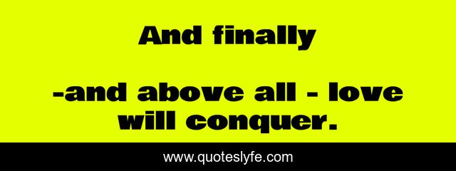 "and above all - love will conquer. Quotes." Quoteslyfe.com, 2025. Mon. 08 Dec. 2025. <https://www.quoteslyfe.com/quote/And-finally-209758>.