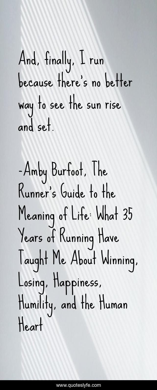 "Amby Burfoot, The Runner's Guide to the Meaning of Life: What 35 Years of Running Have Taught Me About Winning, Losing, Happiness, Humility, and the Human Heart Quotes." Quoteslyfe.com, 2025. Fri. 05 Dec. 2025. <https://www.quoteslyfe.com/quote/And-finally-I-run-because-there-s-254726>.