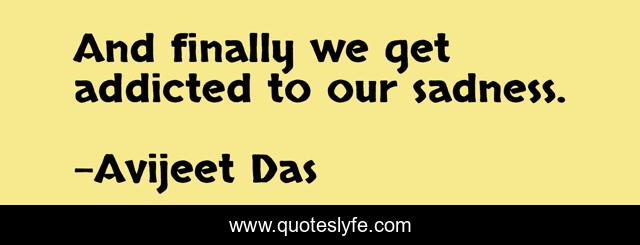 This page presents the quote "And finally we get addicted to our sadness.". Author of this quote is Avijeet Das. This quote is about addicted, life, addicted-to-sadness, sadness, life-and-sayings,.