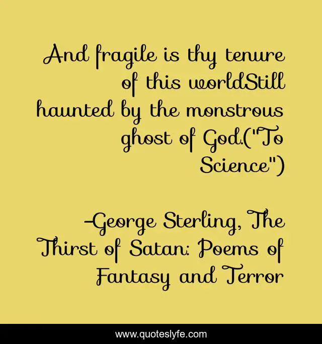 "George Sterling, The Thirst of Satan: Poems of Fantasy and Terror Quotes." Quoteslyfe.com, 2025. Fri. 05 Dec. 2025. <https://www.quoteslyfe.com/quote/And-fragile-is-thy-tenure-of-this-11107>.