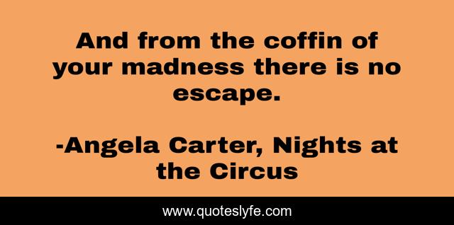 This page presents the quote "And from the coffin of your madness there is no escape.". Author of this quote is Angela Carter, Nights at the Circus. This quote is about madness, escape,.