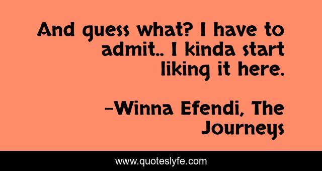 This page presents the quote "And guess what? I have to admit.. I kinda start liking it here.". Author of this quote is Winna Efendi, The Journeys. .