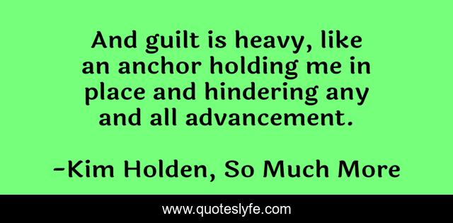 This page presents the quote "And guilt is heavy, like an anchor holding me in place and hindering any and all advancement.". Author of this quote is Kim Holden, So Much More. .