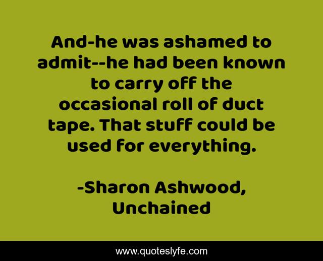 This page presents the quote "And-he was ashamed to admit--he had been known to carry off the occasional roll of duct tape. That stuff could be used for everything.". Author of this quote is Sharon Ashwood, Unchained. This quote is about sharon-ashwood, unchained, humor, paranormal-romance, the-dark-forgotten,.