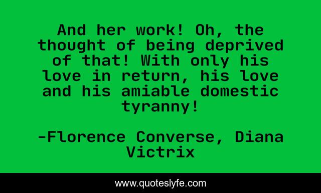 This page presents the quote "And her work! Oh, the thought of being deprived of that! With only his love in return, his love and his amiable domestic tyranny!". Author of this quote is Florence Converse, Diana Victrix. This quote is about work, marriage, feminism, independence,.