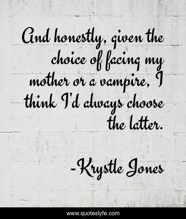This page presents the quote "And honestly, given the choice of facing my mother or a vampire, I think I'd always choose the latter.". Author of this quote is Krystle Jones. This quote is about moms, funny, comedy, vampire,.