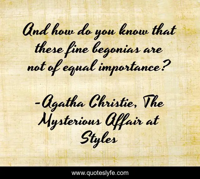 This page presents the quote "And how do you know that these fine begonias are not of equal importance?". Author of this quote is Agatha Christie, The Mysterious Affair at Styles. This quote is about mystery, flowers, hercule-poirot, begonias,.