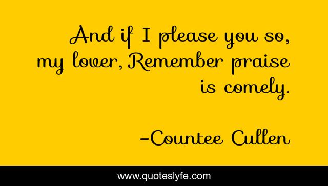 This page presents the quote "And if I please you so, my lover, Remember praise is comely.". Author of this quote is Countee Cullen. .