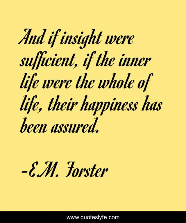 This page presents the quote "And if insight were sufficient, if the inner life were the whole of life, their happiness has been assured.". Author of this quote is E.M. Forster. .