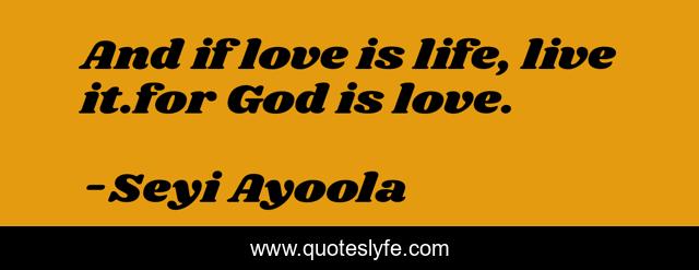 This page presents the quote "And if love is life, live it.for God is love.". Author of this quote is Seyi Ayoola. This quote is about life, love, live, affection,.