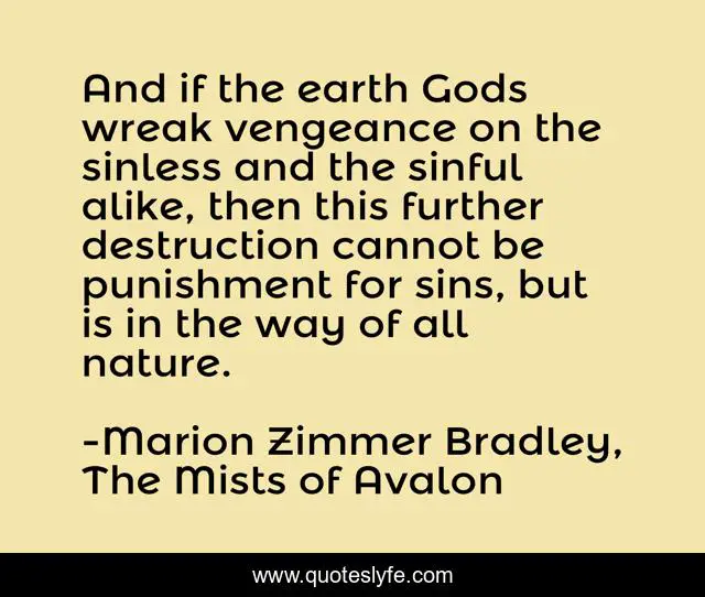 "Marion Zimmer Bradley, The Mists of Avalon Quotes." Quoteslyfe.com, 2025. Tue. 09 Dec. 2025. <https://www.quoteslyfe.com/quote/And-if-the-earth-Gods-wreak-vengeance-235258>.
