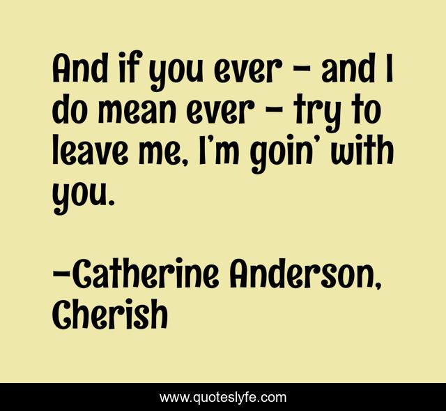This page presents the quote "And if you ever - and I do mean ever - try to leave me, I’m goin’ with you.". Author of this quote is Catherine Anderson, Cherish. This quote is about romance, historical-romance,.