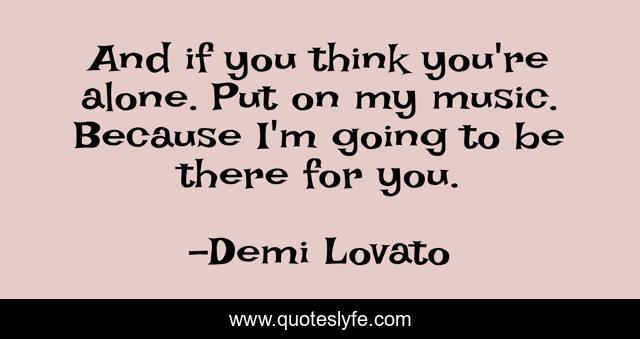 This page presents the quote "And if you think you're alone. Put on my music. Because I'm going to be there for you.". Author of this quote is Demi Lovato. This quote is about demi-lovato, enthusiasm, inspirational,.