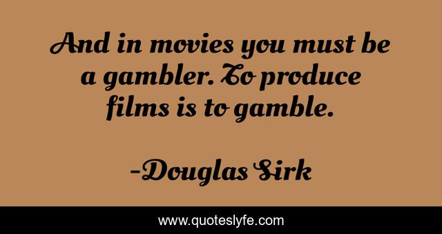 This page presents the quote "And in movies you must be a gambler. To produce films is to gamble.". Author of this quote is Douglas Sirk. .