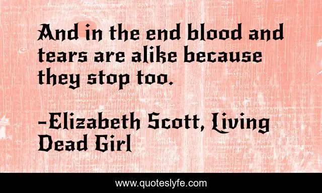 This page presents the quote "And in the end blood and tears are alike because they stop too.". Author of this quote is Elizabeth Scott, Living Dead Girl. This quote is about sadness, survival,.