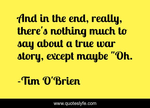This page presents the quote "And in the end, really, there's nothing much to say about a true war story, except maybe "Oh.". Author of this quote is Tim O'Brien. This quote is about stories, war,.