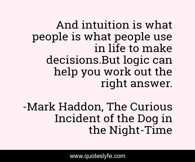 This page presents the quote "And intuition is what people is what people use in life to make decisions.But logic can help you work out the right answer.". Author of this quote is Mark Haddon, The Curious Incident of the Dog in the Night-Time. This quote is about intuition, logic,.