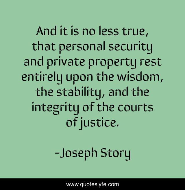 This page presents the quote "And it is no less true, that personal security and private property rest entirely upon the wisdom, the stability, and the integrity of the courts of justice.". Author of this quote is Joseph Story. This quote is about justice, security, integrity,.