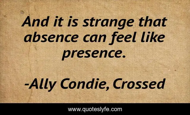"Ally Condie, Crossed Quotes." Quoteslyfe.com, 2025. Sat. 06 Dec. 2025. <https://www.quoteslyfe.com/quote/And-it-is-strange-that-absence-can-228708>.
