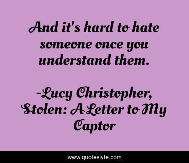 "Lucy Christopher, Stolen: A Letter to My Captor Quotes." Quoteslyfe.com, 2025. Sat. 06 Dec. 2025. <https://www.quoteslyfe.com/quote/And-it-s-hard-to-hate-someone-100338>.