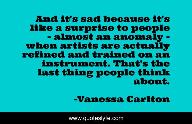 This page presents the quote "And it's sad because it's like a surprise to people - almost an anomaly - when artists are actually refined and trained on an instrument. That's the last thing people think about.". Author of this quote is Vanessa Carlton. This quote is about surprise, think, people,.