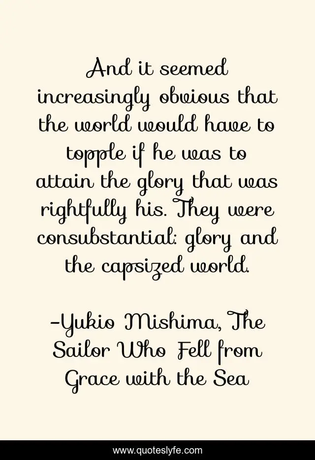 "Yukio Mishima, The Sailor Who Fell from Grace with the Sea Quotes." Quoteslyfe.com, 2025. Fri. 05 Dec. 2025. <https://www.quoteslyfe.com/quote/And-it-seemed-increasingly-obvious-that-the-107660>.