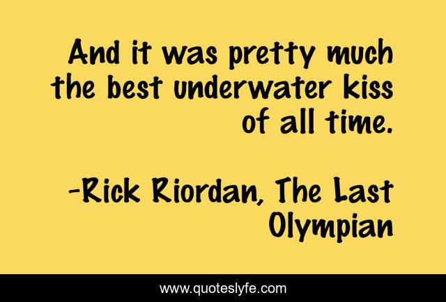 This page presents the quote "And it was pretty much the best underwater kiss of all time.". Author of this quote is Rick Riordan, The Last Olympian. This quote is about kissing, mythology, percy-jackson,.