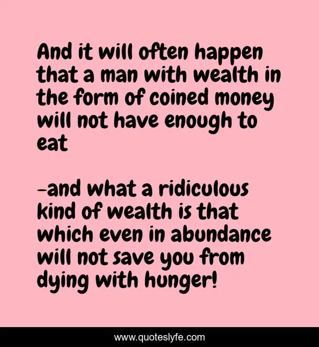 "and what a ridiculous kind of wealth is that which even in abundance will not save you from dying with hunger! Quotes." Quoteslyfe.com, 2025. Sat. 06 Dec. 2025. <https://www.quoteslyfe.com/quote/And-it-will-often-happen-that-a-138503>.