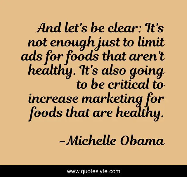 This page presents the quote "And let's be clear: It's not enough just to limit ads for foods that aren't healthy. It's also going to be critical to increase marketing for foods that are healthy.". Author of this quote is Michelle Obama. This quote is about healthy, marketing, limit,.