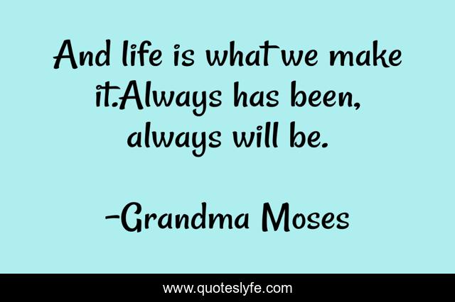 This page presents the quote "And life is what we make it.Always has been, always will be.". Author of this quote is Grandma Moses. This quote is about enthusiasm, life, inspirational,.
