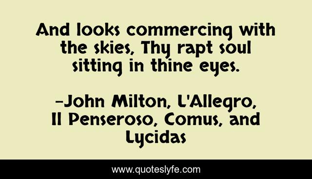 "John Milton, L'Allegro, Il Penseroso, Comus, and Lycidas Quotes." Quoteslyfe.com, 2025. Fri. 05 Dec. 2025. <https://www.quoteslyfe.com/quote/And-looks-commercing-with-the-skies-Thy-60695>.