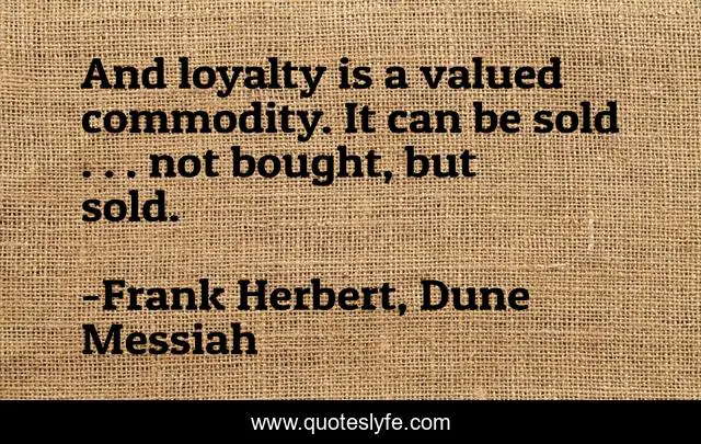 "Frank Herbert, Dune Messiah Quotes." Quoteslyfe.com, 2025. Fri. 05 Dec. 2025. <https://www.quoteslyfe.com/quote/And-loyalty-is-a-valued-commodity-It-230423>.