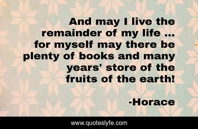 This page presents the quote "And may I live the remainder of my life ... for myself may there be plenty of books and many years' store of the fruits of the earth!". Author of this quote is Horace. .