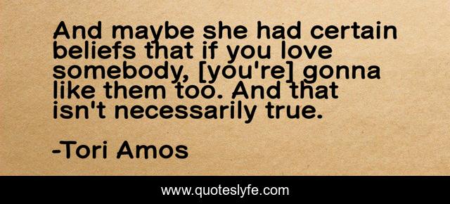 This page presents the quote "And maybe she had certain beliefs that if you love somebody, [you're] gonna like them too. And that isn't necessarily true.". Author of this quote is Tori Amos. This quote is about crazy, scarlet-s-walk,.