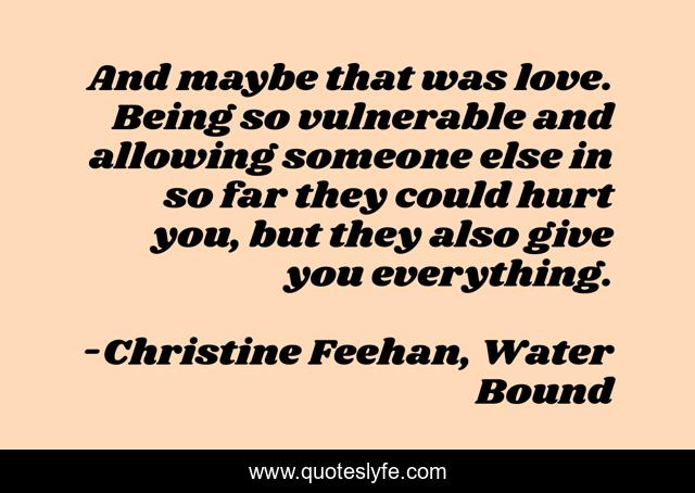 This page presents the quote "And maybe that was love. Being so vulnerable and allowing someone else in so far they could hurt you, but they also give you everything.". Author of this quote is Christine Feehan, Water Bound. This quote is about vulnerability, love, affection, hurt,.
