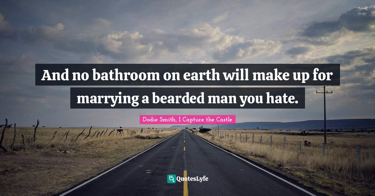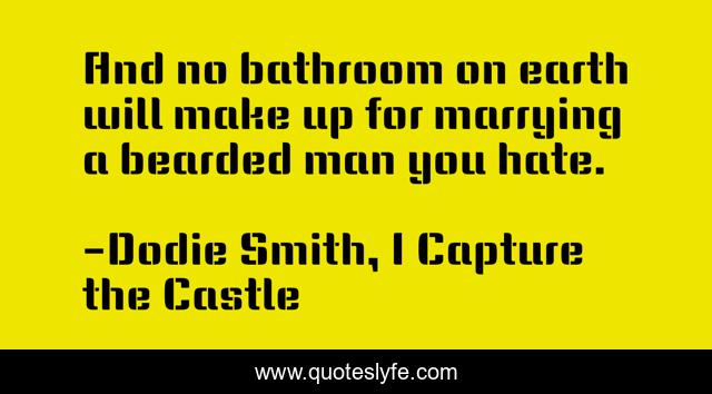 This page presents the quote "And no bathroom on earth will make up for marrying a bearded man you hate.". Author of this quote is Dodie Smith, I Capture the Castle. This quote is about money, marriage,.