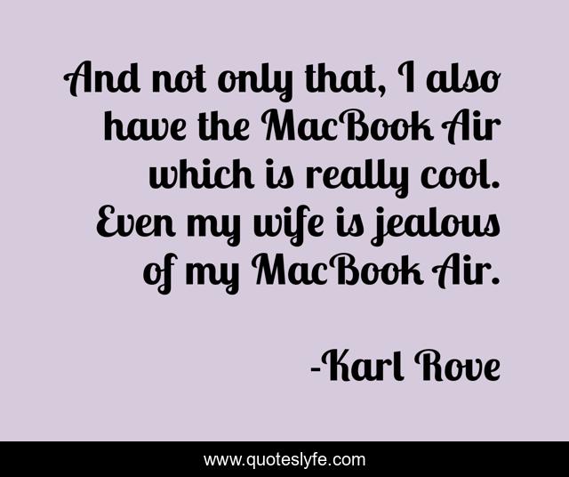 This page presents the quote "And not only that, I also have the MacBook Air which is really cool. Even my wife is jealous of my MacBook Air.". Author of this quote is Karl Rove. This quote is about jealous, wife, air,.