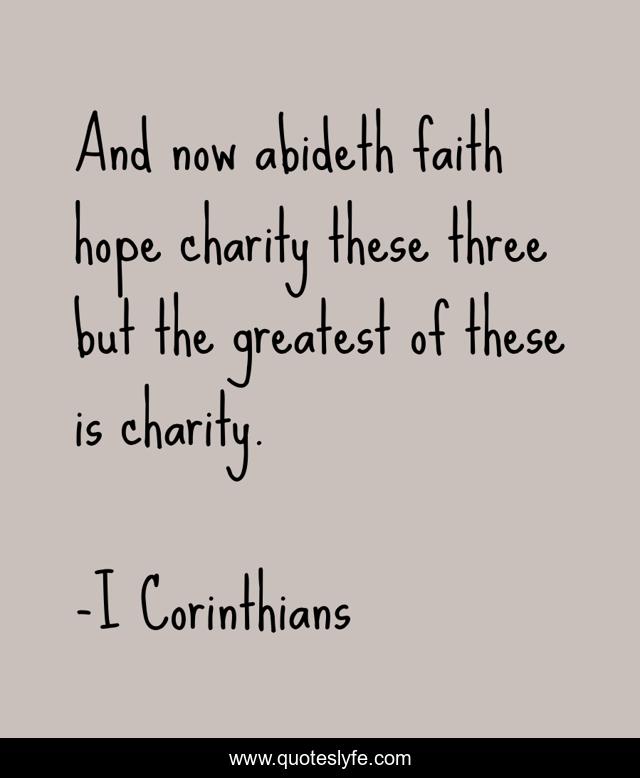 This page presents the quote "And now abideth faith hope charity these three but the greatest of these is charity.". Author of this quote is I Corinthians. .