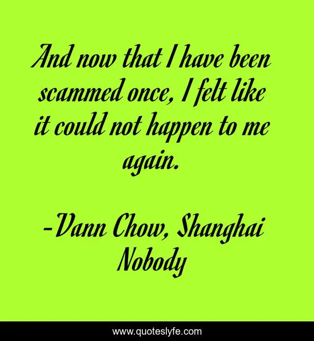 "Vann Chow, Shanghai Nobody Quotes." Quoteslyfe.com, 2025. Sat. 06 Dec. 2025. <https://www.quoteslyfe.com/quote/And-now-that-I-have-been-scammed-80436>.