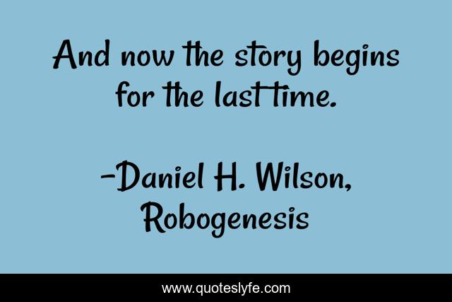 This page presents the quote "And now the story begins for the last time.". Author of this quote is Daniel H. Wilson, Robogenesis. This quote is about begins, story, last-time,.