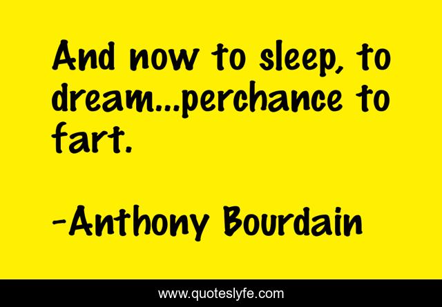 This page presents the quote "And now to sleep, to dream...perchance to fart.". Author of this quote is Anthony Bourdain. This quote is about kansas-city, humor, no-reservations, shakespeare,.